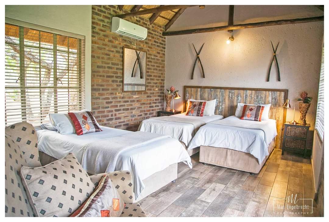 From the outdoor living area joins another bridge which leads to a fully equipped kitchen and indoor living area. They are joined by wooden bridges that lead to the outdoor communal braai/barbecue area. Units have air-conditioning as well as en-suite bathrooms.